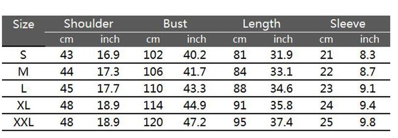 Note: Dear buyer, buy clothes, please refer to our table size. You can measure the size of the clothes for you, get the exact size. 1-3cm error of manual measurement data, please understand.